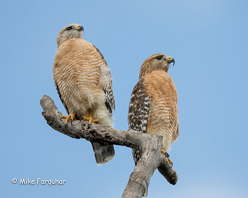 We are fortunate to have such majestic birds in our area. Red-shouldered Hawks can be very enjoyable to watch as they cruise the sky and call to let us know that they are in their territory.