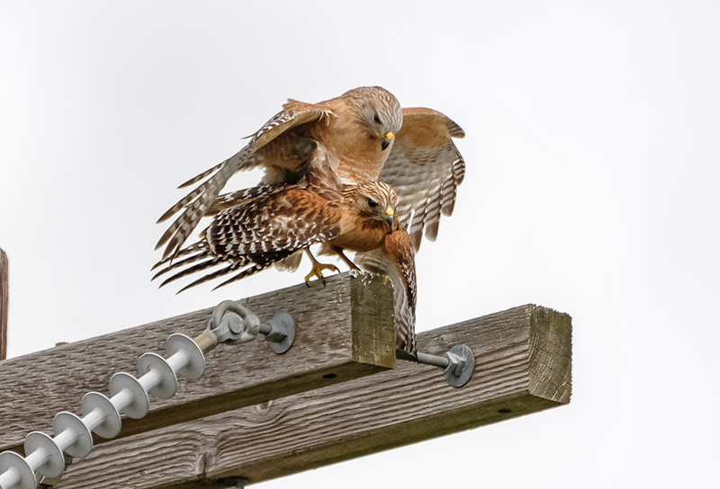 In the spring, Red-shouldered Hawk pairs find and refurbish a previous nest or build a new one to prepare for the family they will create that year. Park visitor, Mike Furquhar, captured these images of a pair of Red-shouldered Hawks mating in the park on April 26th.